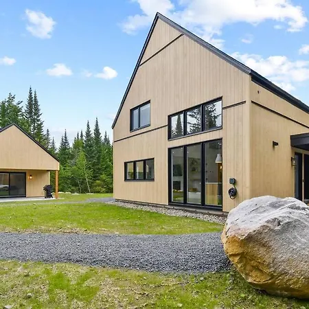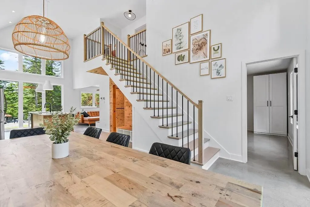 Sainte-Lucie-de-Doncasterに位置するChalet Le Konfor, Spa Et Nature !は3のベッドル-ムがある施設で,テラスと庭園の景色があります. シャレ-には3のバスル-ムと設備の整った台所が付いています.